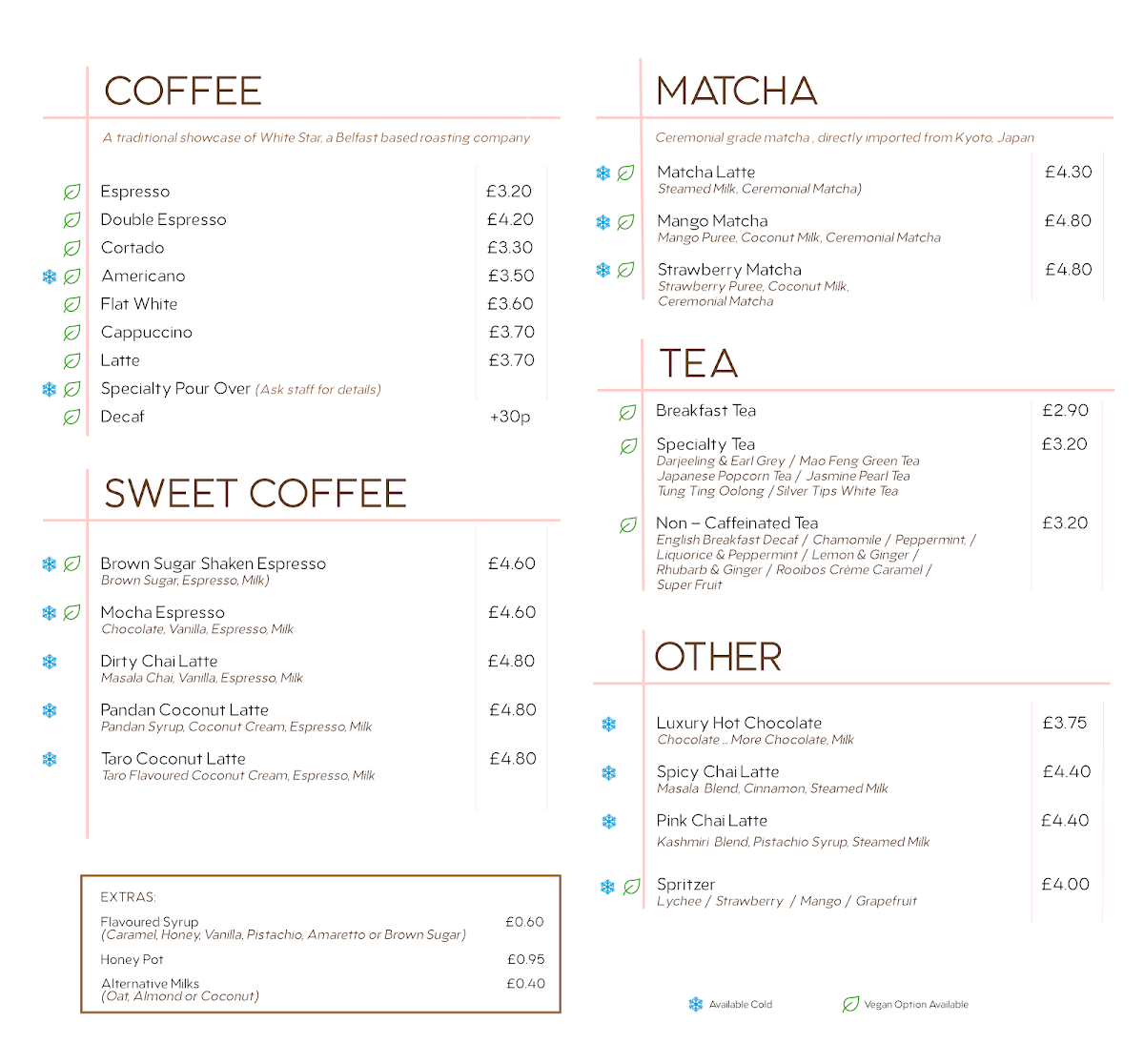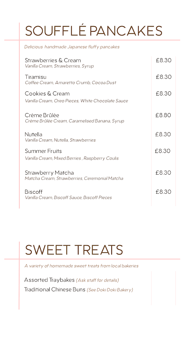 The menu shines with its creative concoctions and delightful treats. For matcha lovers, the Matcha Latte (£4.30) and the fruity Mango Matcha (£4.80) are sublime choices that marry rich flavors with vibrant colors. If you're feeling adventurous, the Strawberry Matcha (£4.80) offers a unique twist that is nothing short of spectacular.